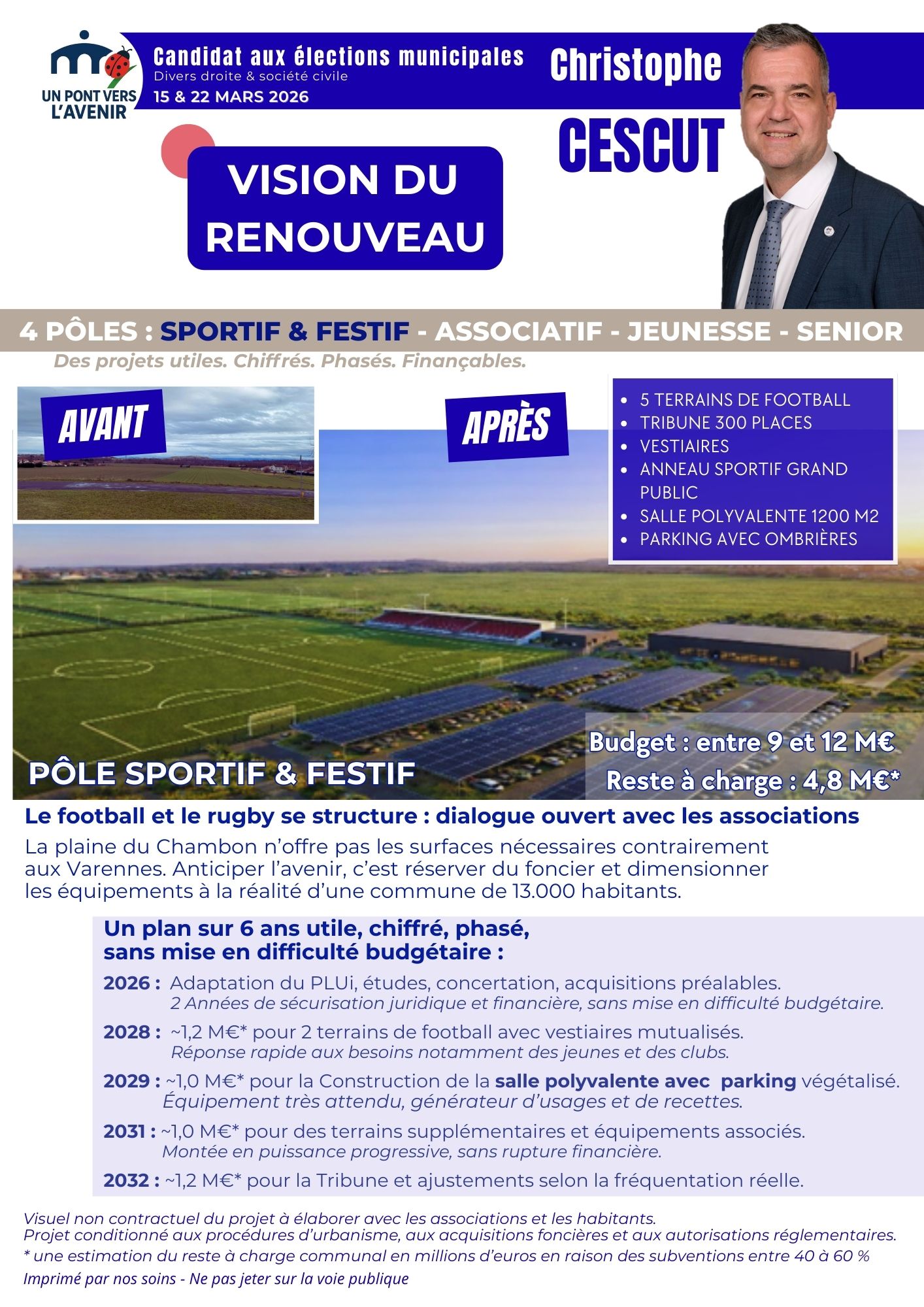 Faux : la Plaine du Chambon (complexe sportif) et la nouvelle École ne sont pas planifié pour les années a venir seul les études de faisabilité sont ouvertes comme a chaque nouvelles élections depuis 2001.